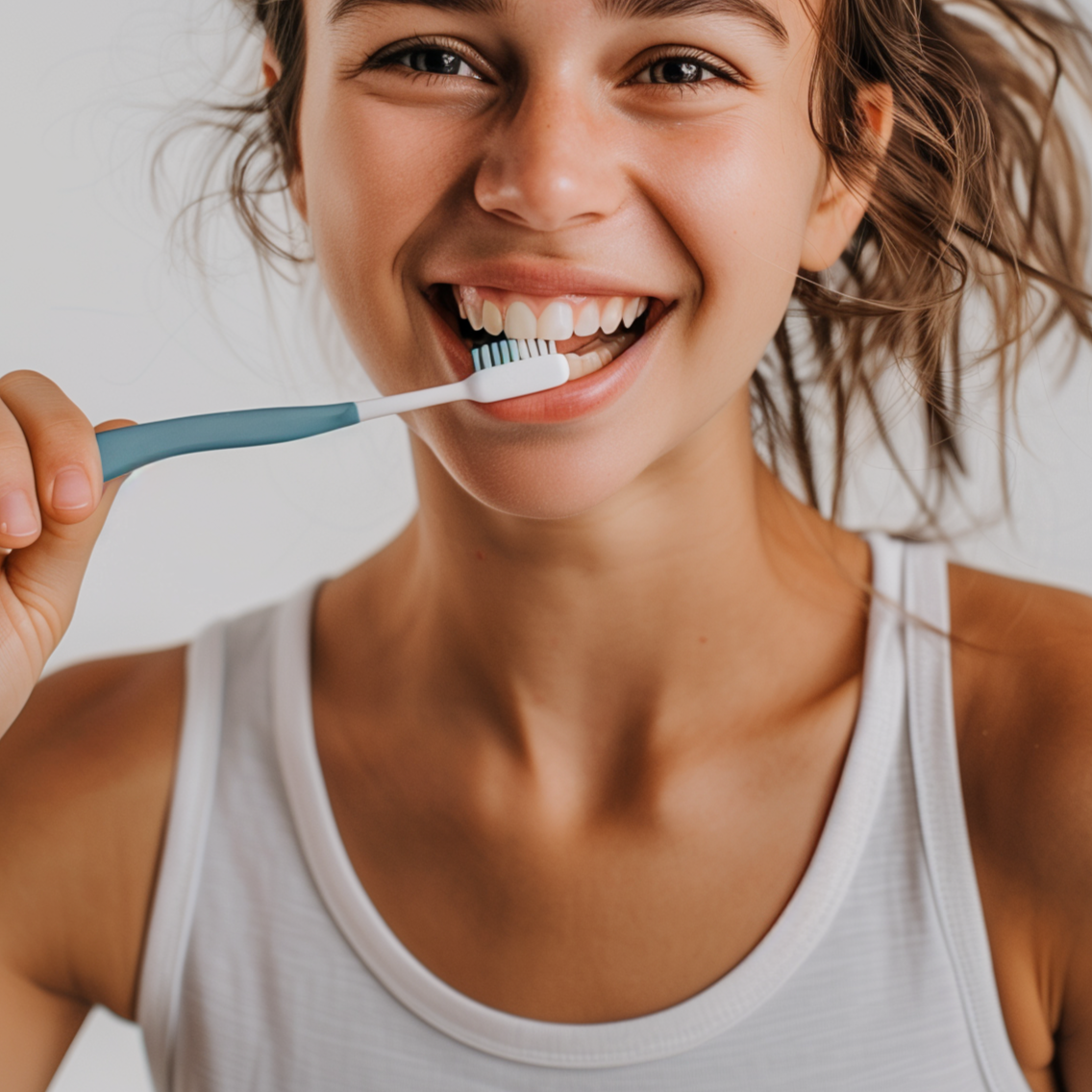 When choosing your toothbrush, you should make sure that it has soft to medium-hard bristles so that plaque is removed without damaging your gums. If you like, use an electric toothbrush. We also recommend replacing your toothbrush or brush head every three months. Just as important as the toothbrush is the right toothpaste. Here you have free choice depending on your taste, although we recommend a toothpaste with fluoride, as this strengthens the tooth enamel and prevents tooth decay.